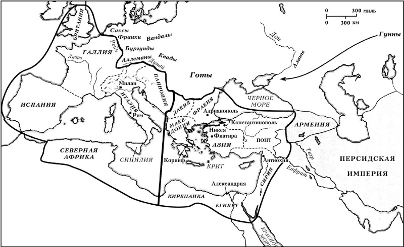 Готы окружили город, но они были значительно менее опытны в ведении осад, нежели в открытом бою, и вскоре отступили. То же они попытались сделать в Константинополе – и вновь поняли, что не могут пробиться через стены. Они отступили, но главное стало очевидным: Римская империя перестала быть непобедимой. Землетрясение и потоп оставили её в руинах, далекая орда варваров испугала её, а разъяренные беженцы смогли убить императора.