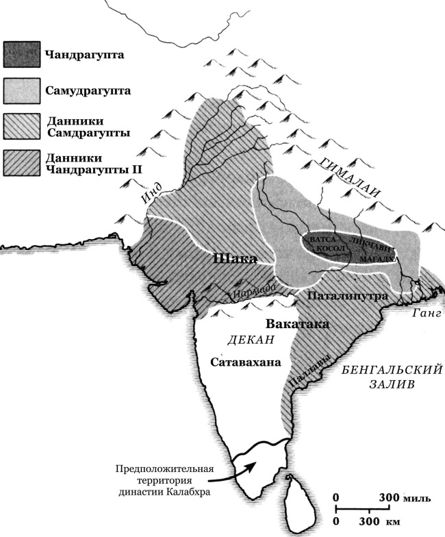 Чандрагупта II правил почти сорок лет. После смерти в 415 году он стал легендой: мудрый Викрамадитья, центральная фигура героических преданий и мифов. После него осталась империя. По сути, она была немногим больше владений Самудрагупты, но имела номинальную власть над юго-востоком, западом и севером Индии, – то есть контролировала весь полуостров за исключением юго-западной его части. То была империя, в которой не прибегали к жесткому контролю, не насаждали единой религии и не требовали верности – империя мудрости.