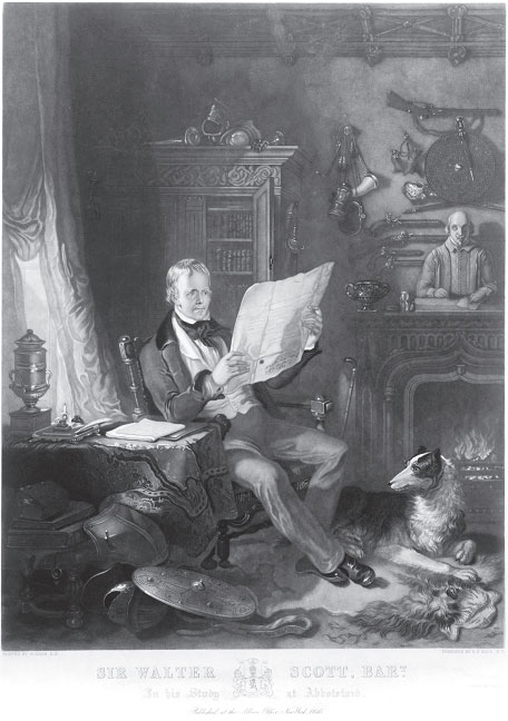 Вальтер Скотт в своем рабочем кабинете в имении Абботсфорд.