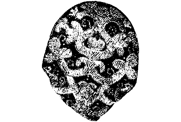 Начнем с того, что на головках, т. е. на верхних, затылочных частях северодвинских и тарногских повойников, выполненных из штофа и бархата, как правило вишневого, малинового или алого цвета, изображаются вышитые золотными или серебряными нитями по карте (картонным шаблонам) странные зооантро—поморфные существа. Как правило, каждое из них представлено в характерной распластанной