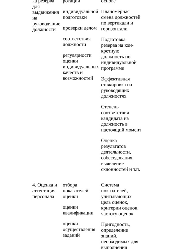 3) основные принципы кадровой политики по наиболее важным направлениям: подбору и расстановке персонала, формированию и подготовке резерва на должности, оценке степени развития персонала, оплате труда, использованию кадрового потенциала и т. п.
