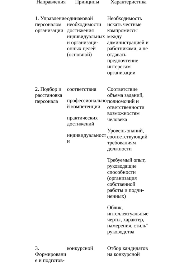 Главными принципами отдельных направлений кадровой политики организации можно назвать следующие.