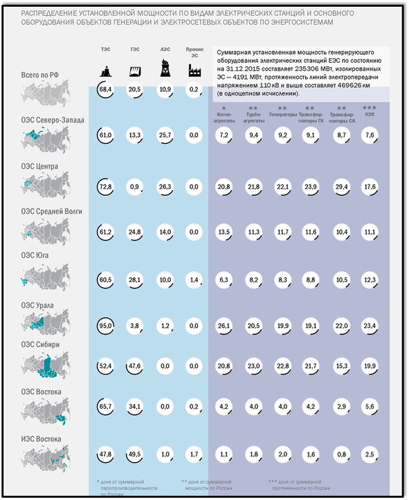 Рисунок В.2. Общие характеристики Объединенных энергетических систем России