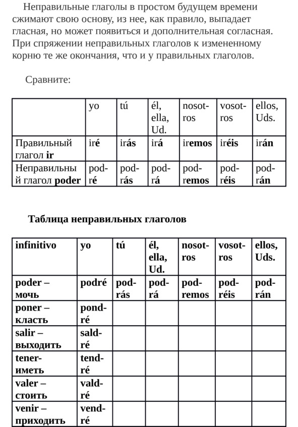 Раздел 2. Простое будущее время (Futuro Imperfecto / Simple, Future Simple Tense) в испанском и английском языках