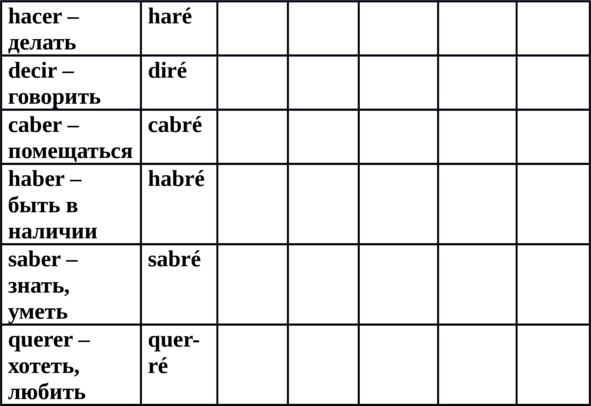 Проспрягайте следующие глаголы в простом будущем времени изъявительного наклонения (Futuro Simple / Futuro Imperfecto de Indicativo).