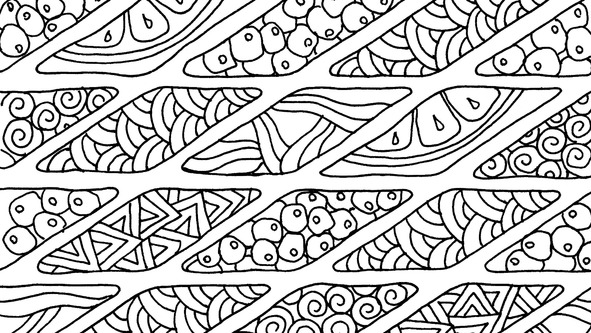 Раскраски желательно брать с абстрактными, геометрическими или растительными орнаментами, чтобы форма не задавала ограничения по цвету. Например, изображение человека вынуждает использовать телесный цвет. Именно таких ограничений и необходимо избежать. Также желательно на первое время использовать раскраски небольшие по размеру и объему работы. В приложении к этой книге есть несколько листов с раскрасками, отвечающими этим требованиям.