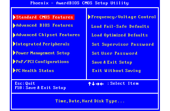 Basic Input/Output System – система ввода вывода. Практически это первоначальная связь между пользователем и компьютером. БИОС запускается при включении компьютера и выполняет следующие действия – проверяет аппаратную часть, передает управление операционной системе, хранит после выключения пользовательские настройки и обеспечивает допуск к различным устройствам со стороны прикладных программ. Существуют множество видов БИОС, у вас может оказаться любой из них, здесь на фото представлены два варианта.