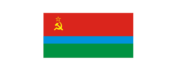 Второй состоял из красной, голубой и зеленой трех горизонтальных полос (соотношение ширины полос 3: 1: 2), в верхней части красной полосы у древка – золотые серп и молот и красная, обрамленная золотой каймой, звезда.