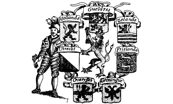 Этот герб стал основой герба Генеральных штатов республики Соединенных провинций: в золотом поле бросающийся красный лев, увенчанный короной, в его правой лапе – голубой меч, а в левой – пучок из семи (по числу провинций) голубых стрел; вокруг льва – гербы провинций.