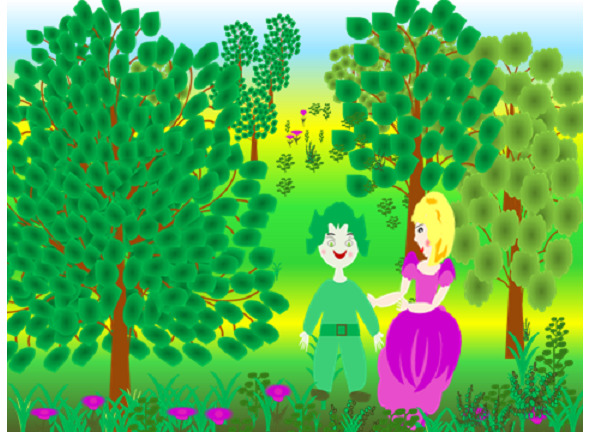 Она сорвала листочек с ветки и бросила. Листок коснулся травы и стал расти. Наконец, он превратился в маленького мальчика в лёгкой зелёной одежде.