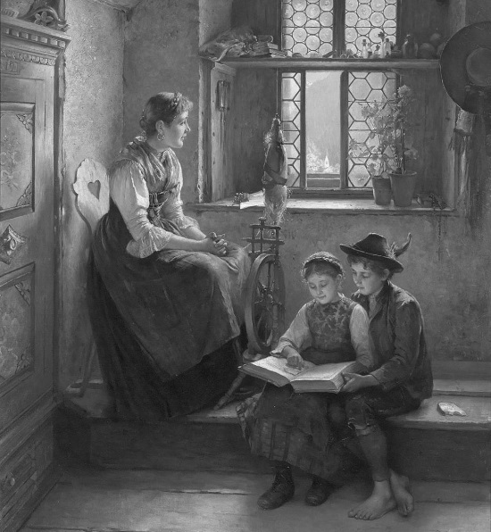 «В большом городе, где столько домов и людей, что не всем и каждому удается отгородить себе хоть маленькое местечко для садика, и где поэтому большинству жителей приходится довольствоваться комнатными цветами в горшках, жили двое бедных детей, но у них был садик побольше цветочного горшка. Они не были в родстве, но любили друг друга, как брат и сестра. Родители их жили в мансардах смежных домов. Кровли домов почти сходились, а под выступами кровель шел водосточный желоб, проходивший как раз под окошком каждой мансарды. Стоило, таким образом, шагнуть из какого-нибудь окошка на желоб, и можно было очутиться у окна соседей.