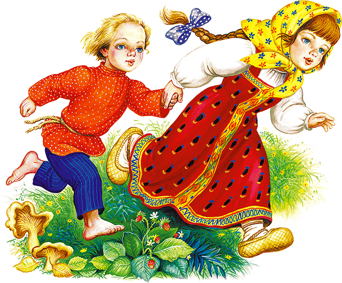 Отец с матерью ушли, а дочка позабыла, что ей приказывали: посадила братца на травку под окошко, сама побежала на улицу, заигралась, загулялась.