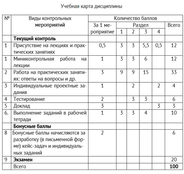 Для получения прочных знаний студентов, стимулирования регулярного посещения занятий и систематической подготовки к практическим и семинарским занятиям возможно использование балльно-рейтинговой системы.