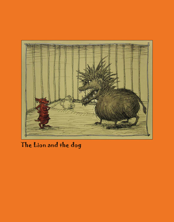 He was admitted to watch and the little dog he picked up was thrown into the lion cage to be devoured. The dog dropped its tail between its legs and clung to the corner of the cage.