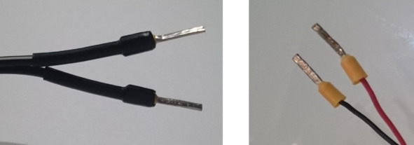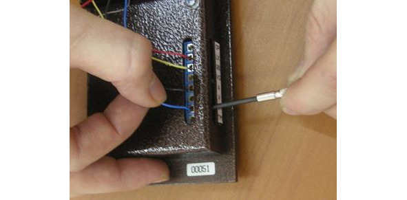 Некоторые типы слаботочных проводов состоят из множества тонких жилок (смотри фото слева). Чтобы использовать такой провод в сухом контакте, его необходимо подготовить. Снять изоляцию с конца кабеля. Тонкие жилки нужно скрутить вместе и обжать с помощью гильз или пропаять.