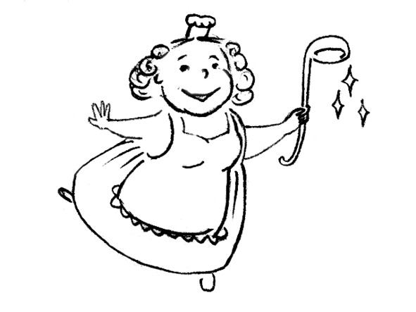 Лежит, горюет. К темноте привыкает. Как вдруг… Пуф-ф! В норе запахло ванилью и свежими кексами – перед Сурком возникла Сурочья Фея. Сурок ее сразу узнал. На Фее был белый передник с оборочками, на голове маленький поварской колпак, расшитый серебром, а в руках – Волшебная поварешка!