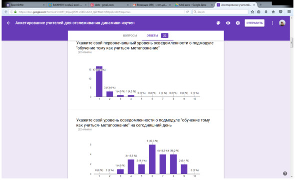 Рис. 3. Исследование динамики усвоения материала с помощью опросников, создаваемых в Google Формах