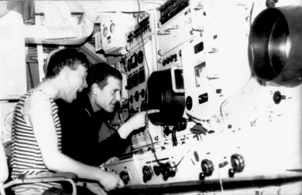 В гидроакустической рубке все шло по – наработанной схеме. Мичман Владимир Глухов – техник ГАГ и главный старшина Валерий Коронский привычно наблюдали за подводной обстановкой на экранах гидроакустической станции «Титан». Станция излучала ультразвуковой сигнал «Пя-у-ум, пя-у-ум». Гидроакустическая рубка находилась ниже ватерлинии, и все эти звуки хорошо было слышно сквозь борт. Гидроакустики были в наушниках с микрофонами и периодически докладывали на главный командный (ГКП) пункт о подводной обстановке: