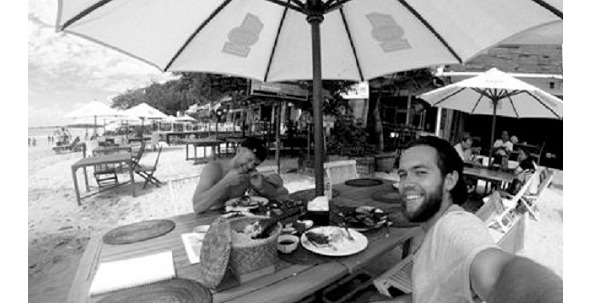 После серфа мы дико проголодались и поехали на Джимбаран – это район, в котором торгуют морепродуктами, там есть отличные заведения, где на кокосовых углях тебе приготовят, что угодно. Пробовал всю морскую живность, которая только есть, но самым любимым уже как год после поездки во Вьетнам является тунец и рыба-меч, приготовленные на огне и без всякого соуса, просто соль, перец и немного лайма. Но, черт возьми! Балийцы в кафе «Менега» всех переплюнули… Мы заказали «Yellow little fish» и «King fish»: какие то ракушки, после того, как я попробовал этих двух рыб, я сказал: «Это самое вкусное мясо, которое я пробовал в жизни». После чего Кирилл сказал: «У меня тоже». А он 15 лет жил во Франции.. После такого обеда, мы, еле забравшись на мопеды, поехали на второй пляж – «Дримленд». В прошлый раз меня впечатлил этот пляж, так как там очень большие волны и голубоватого оттенка вода. Но сегодня я не увидел ни волн, ни пляжа, так как когда мы туда приехали, подъехало 5 автобусов с веселыми китайцами)) Кирилл пошел снова серфить, а я решил отдохнуть в кафе с видом на океан с ароматным кофе.