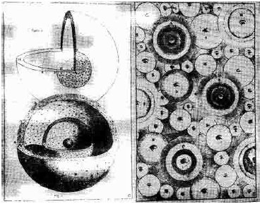 Схема Вселенной Томаса Райта, 1750. Слева – схема строения Солнечной системы, справа – множественность звездных систем.