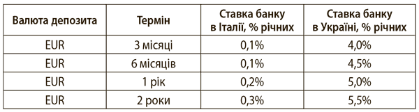 Порівняймо умови за депозитами в одному й тому самому банку UniCredit. В одному випадку ставки, пропоновані в Італії, в іншому – ставки в Україні.