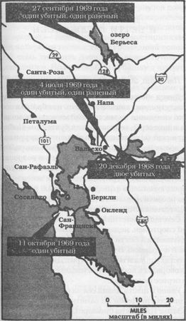 Карта преступлений Зодиака в Северной Калифорнии. Выполнена автором