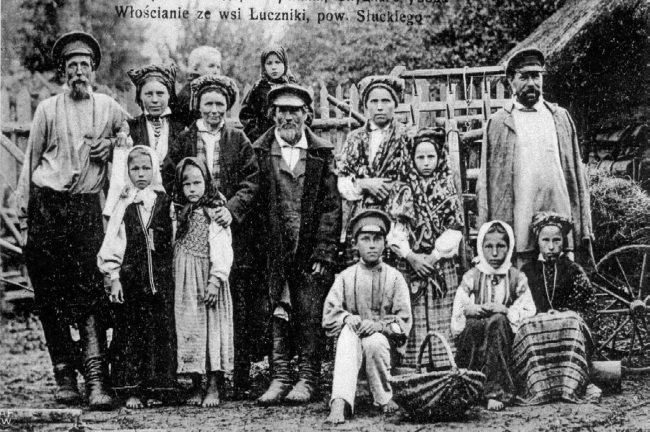 Крестьяне деревни Лучники Слуцкого уезда. Открытка начала ХХ в.