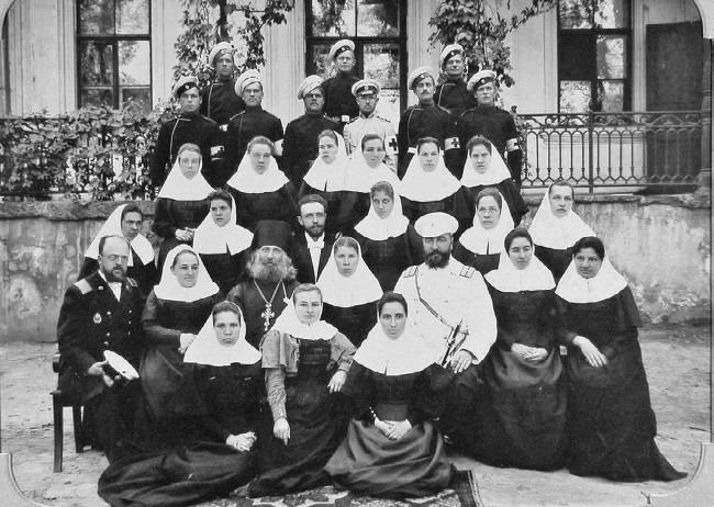 Отряд сестер и братьев милосердия имени императрицы Марии Федоровны, предназначенный для плавучего госпиталя, организованного на пароходе «Царица». 1900 г