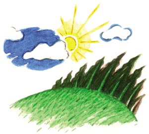 В ту же минуту зайчик почувствовал, как что-то тёплое коснулось его ушка. Словно на него скатилась с листика рябинки, росшей рядом, нагретая солнышком капелька росы. Но то была не росинка. Это тонкий солнечный лучик пробежал вдоль заячьего ушка, и шёрстка на нём, обычная серая шёрстка, стала нежно-золотистой. И, самое интересное, цвет этот не изменился и после того, как солнышко спряталось за густую крону высокой сосны.