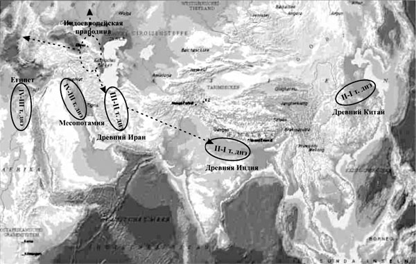 Рис. 3. Карта развития религиозных формирований в IV–II тысячелетии до н. э.