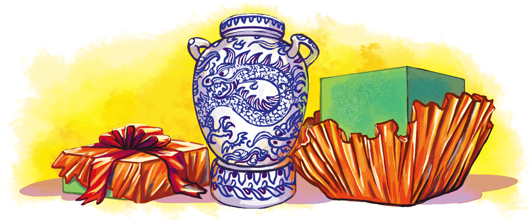 Наконец бабушка разрезала всю упаковку. В коробке оказалась здоровенная китайская ваза из белого фарфора, расписанная синей и фиолетовой краской. У неё были две ручки и толстое дно. Бабушка кое-как сумела вытащить её из ящика.