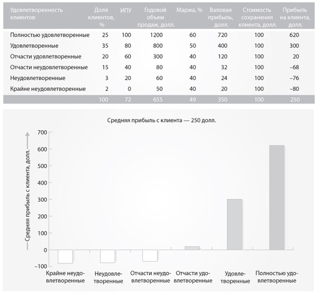 Еще более впечатляет роль полностью удовлетворенных клиентов в получении прибыли