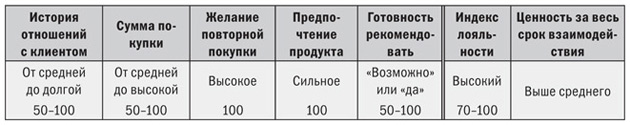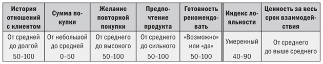 Измерение лояльности клиентов обычно показывает широкий диапазон значений – от 0 до 100. В силу прямой корреляции между прибыльностью клиента и его лояльностью большая лояльность означает более высокую прибыльность и наоборот.