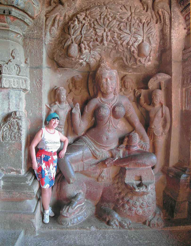 Я рада, что В. В. побывал в Аджанте и Эллоре и проникся их эстетической аурой. В свое время меня они тоже поразили своей художественной мощью. Открытием было то, что в пещерных храмах Аджанты Будда предстает не только в знакомом европейцам антропоморфном обличии (его взгляд сопровождает вас во всех уголках пещеры), но и в сугубо абстрактном, нефигуративном виде – в качестве стилизованной буддийской ступы с подобием лестницы (но не той, что ведет в небо, а той, по которой спускаются с небес) или многоярусных шарообразных конструкций в глубине колоннады. Мощная символика, и сугубо художественная! Впечатляет и природный ландшафт Аджанты: в глубине гигантской чаши, образованной базальтовыми скалами, в которых и вырублены пещерные храмы, бьет водопад, сверкает река, буйствует зелень, а выше, сколько видит глаз – обрамляющие это таинственное место джунгли. Храмовое пространство столь протяженно, что некоторые путешественники осматривают его, восседая на паланкинах, за другими же за небольшую плату носят их обувь – как и во всех индуистских святилищах, ее принято оставлять у входа.