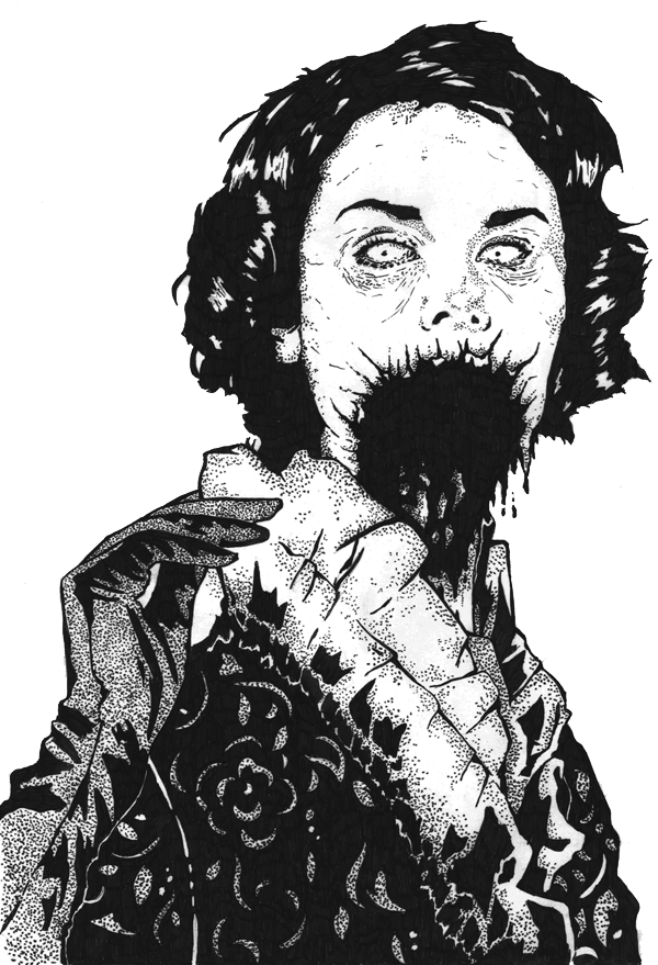 Сначала казалось, что рот и подбородок женщины скрыты чем-то вроде чадры или платка, но затем становилось ясно, что они попросту отсутствуют: вместо нижней челюсти зиял провал, и красное месиво, изуродованное ядом, представляло собой разъеденную плоть и испускало нестерпимое зловоние.