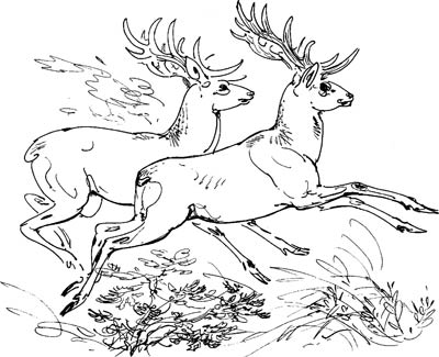 Но вот те Двое зашевелились, повернули в разные стороны и медленно направились к лесу. Величественный олень прошел совсем близко от детей. В покойной красоте прошествовал он, гордо неся царственную голову и никого не удостоив взглядом. Дети боялись дышать, пока он не скрылся в чаще. Они отважились обменяться взглядом лишь в тот момент, когда лес задернул свой зеленый полог за великолепным незнакомцем.