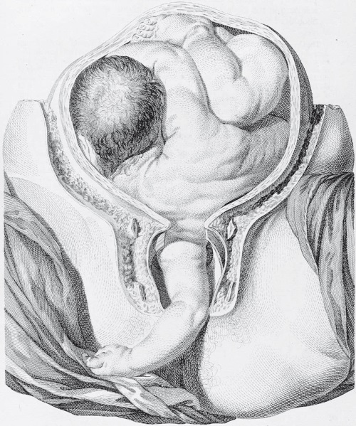 Если спинка выгнута в обратную сторону, так что голова просунута между лодыжками, словно у китайского акробата, необходимо ампутировать ручку ребенка, а туловище разделить на части зазубренными щипцами и вытащить наружу по кускам. Доктор Смелли предупреждает: если хоть один кусочек останется во чреве, он загниет и роженица может погибнуть. При согнутом же расположении, когда колени прижаты к груди, можно, отпилив ручку, повернуть плод, зацепить крючками за глазницы и вытащить целиком, головою вперед.