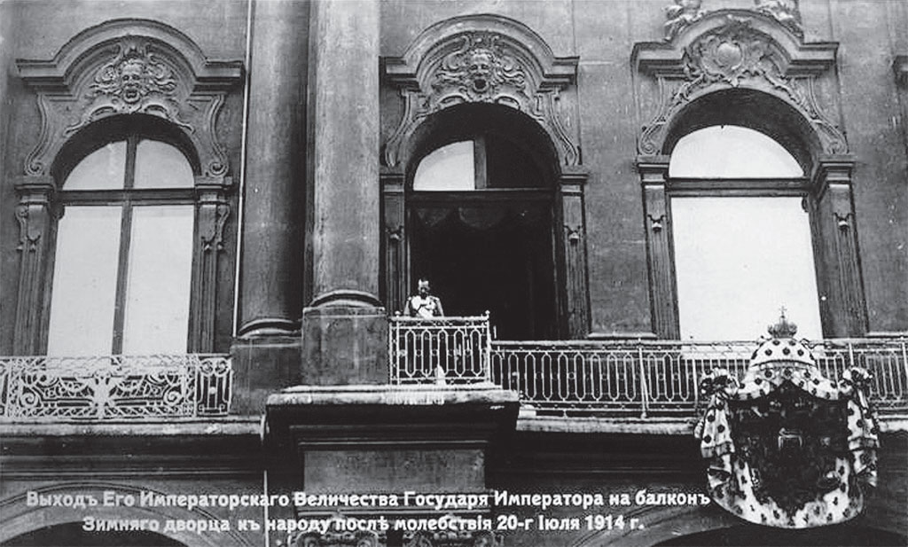 Император Николай II объявляет войну Германии с балкона Зимнего дворца. Июль 1914 г.