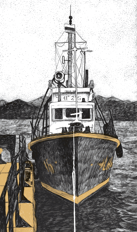 Спрыгнув на сушу и разматывая веревку, мальчишка прытко понесся к опушке леса. Там он закрепил конец на отдельно стоящей коренастой ели и вернулся.