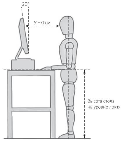 Купите конторку или стол-трансформер, у которого столешница поднимается и опускается. Можно обойтись и подручными средствами: водрузить на стол картонную коробку, а сверху поставить компьютер или положить тетрадь. Важно! Отрегулируйте высоту стола по росту, чтобы не уставать и не портить осанку. Вот так это должно выглядеть в идеале.