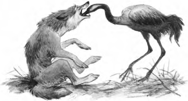Журавль засунул голову, вытащил кость и говорит: