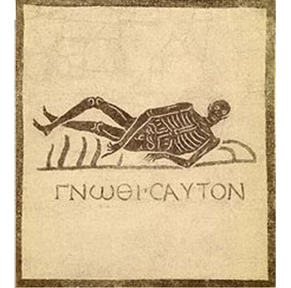 Римская мозаика с надписью на греческом языке «Познай себя»