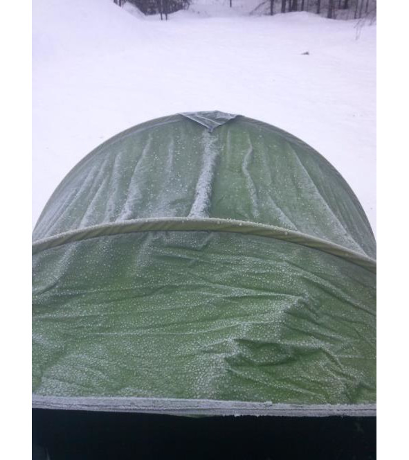 (5.03.15) Утро встретило меня свежо. Иней на потолке палатки. Ледяные капли на скатах. Занесённые снегом и примёрзшие палки. Первый раз одел зимние вещи. Днём потеплело. Встретил за день сразу троих крутых ребят Дениса, дальнобойщика и Вадима. Ден монетку подкинул, сказал, что завтра на обратном пути захватит что-нибудь. Как я в последствии узнал, он тренер по тхэквондо в Выборге, красава однако)) Меня больше чем на зелёный пояс не хватило…