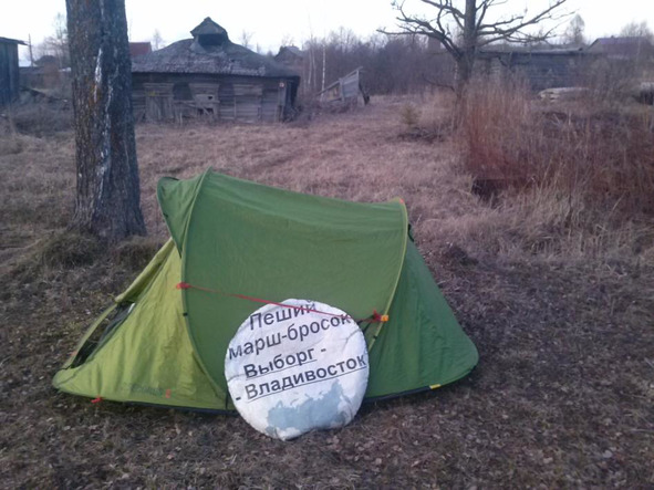 (25.04.15) С утра, разбудили «архангельские парни» – отец с сыном. Ехали за снарягой горной в Ярик. Угостили чаем, накормили. Успехов им! Рюкзак у меня забыли, вечером заезжали забирать. Сегодня думал о возможности создания вендинговой сети аппаратов «на дни города». Буквально на 1 день. Дошёл до Причистого, повернул на Любим. Встал посреди посёлка, рядом со старым заброшенным домом. Начал читать социологию.