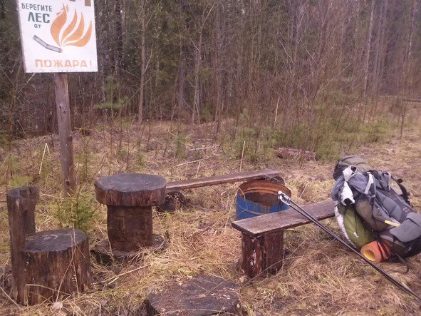 (3.05.15) Целый день, ни посёлка, ни магазина, ни заправки… Погода нормализуется. Скачки уже не такие частые. Днём подошёл к реке Тойга. Не знаю как в ней правильно ударение, но полагаю, что на О. Остановился на обед, рядом, в довольно обустроенном кемпинге. 3 лавочки, стол, яма для мусора, обложенное кирпичами костровое место. Приготовил пюре «из пакета» картофельное. Буйчане остановились 4 человека. Познакомились, угостили меня колой и печеньками. Вода в речках, ручейках, по сравнению с ранней весной – стала чище гораздо, муть осела, Остановился в лесочке небольшом рядом с дорогой. Снимал сюжет про палатку – не шибко одному удобно конечно, но «мисшн комплит» как говорится)) До Стапаново 19 км. Там ждут в гости. Жанна. В химтехе, учились в параллельных группах. Вот ведь как в жизни бывает…