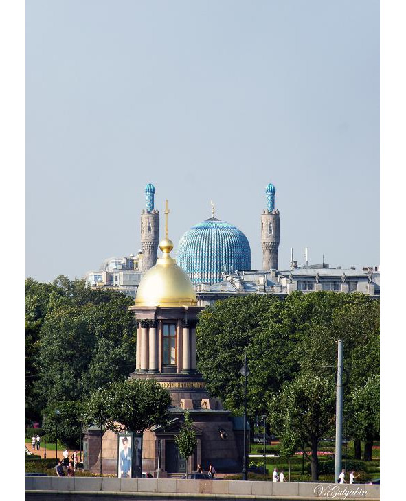 View of Trinity Square from Neva (on a background – the Tatar Mosque)