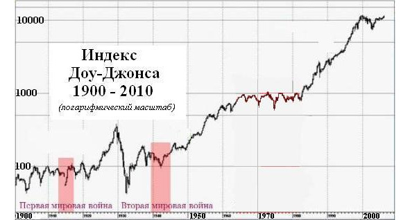Рис. Динамика промышленного Индекса Доу-Джонса (фондовый индекс, охватывающий стоимость акций 30 крупнейших компаний США)