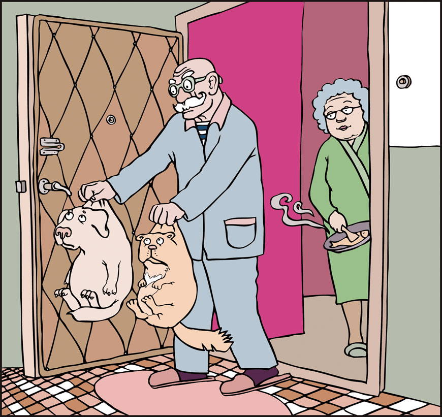 Дед, отложив в сторону книжку и очки, хватал одной рукой Золотого, другой – Казю и вышвыривал их на лестничную клетку. Нет ничего хуже для честной собаки, чем потерять дом и стаю (то есть семью)!