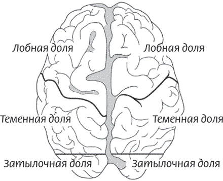Рисунок 3. Доли больших полушарий, вид слева и сверху