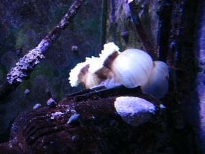 Тогда актиния (телепатически угадав момент, когда мой палец лежал на кнопке выключения света) ногу свою шустро из песка вытащила и … двинулась на поиски своих предполагаемых полосатых квартирантов!